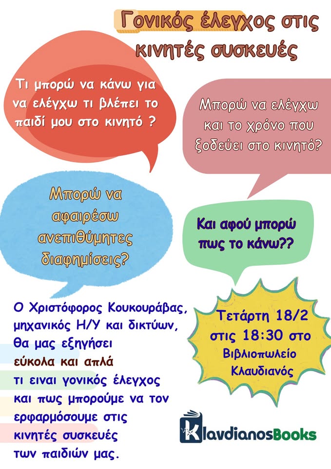 Κινητό vs Γονιός σημειώσατε 1-0 ….!!! Spread the love for ZanteSpread the love for ZanteΓονικός έλεγχος στις κινητές συσκευές .Η αλόγιστη χρήση των κινητών συσκευών από τα παιδιά έρχεται να προσθέσει άλλο ένα άγχος στους γονείς του σήμερα. Τι παρακολουθεί , πόση ώραπαρακολουθεί , είναι λάθος , είναι σωστό ??? Πως μπορώ να το ελέγχω , να βάζω φρένο γιανα μην μαλώνουμε και κάθε μέρα […] Spread the love for Zante